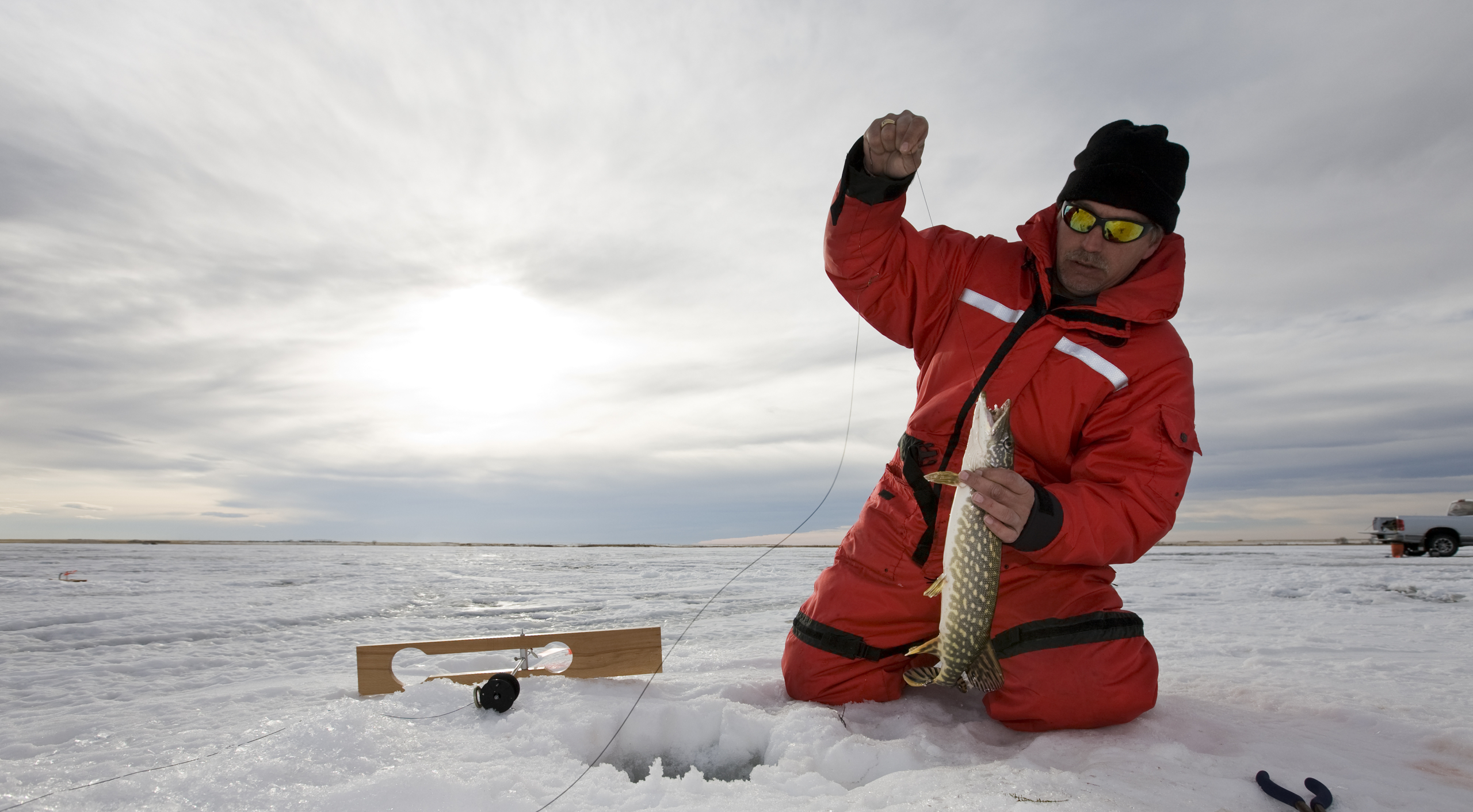 Equipment list includes the following: Ice fishing rods & reels, bait, sonar/fish finder, underwater camera, heated portable ice hut (to keep you toasty warm), as well as comfortable seating inside the shelter. Species targeted are Northern Pike & Walleye.